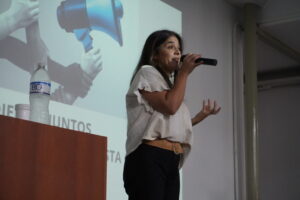 A continuación, tomó la palabra Marta Toledo, fonoaudióloga invitada, quien brindó una charla práctica sobre el cuidado vocal. Compartió recomendaciones útiles para preservar la salud de la voz, como la importancia de la hidratación, evitar gritar o hablar en ambientes ruidosos, y prestar atención a signos de fatiga vocal. “La voz se desgasta si no se cuida. A veces, el silencio también es una forma de sanarla”.